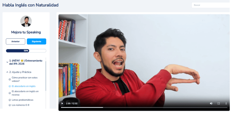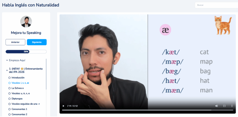 Entrenamiento en video para adultos hispanohablantes que quieren ajustar su pronunciación.